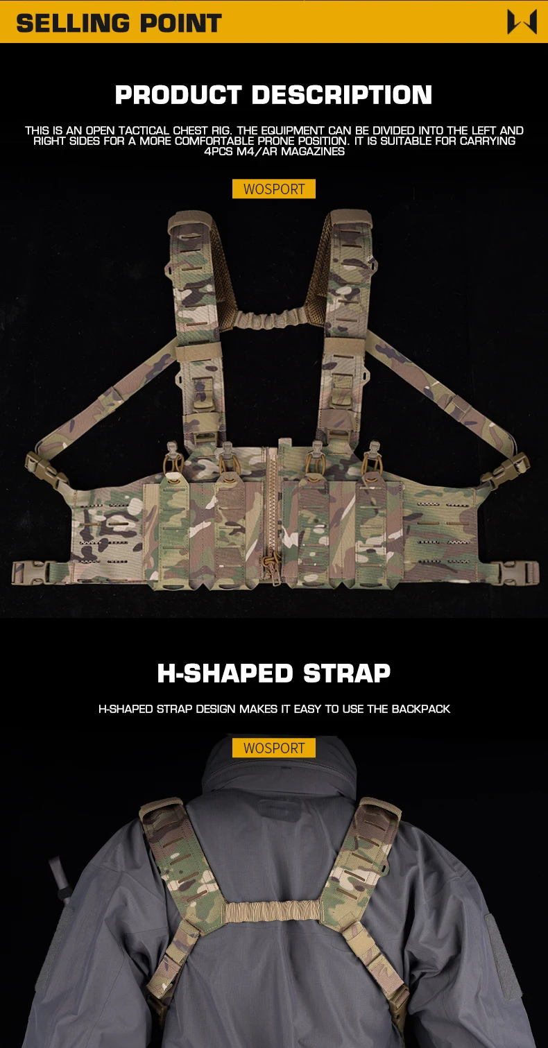 Tactical SF Vest Chest Rigs Lightweight Camouflage MOLLE Militar Hunting Airsoft Assault Vest with Mag Pouch H-Style Strap